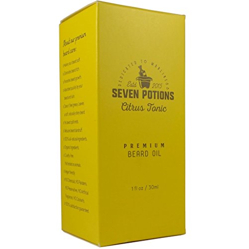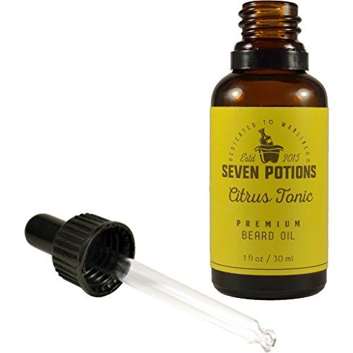 Get ready to unleash your masculinity! Whether you are a self-proclaimed mountain man, a busy professional or a trend-conscious hipster, our beard oil is key to nourishing your beard and mustache without the fuss. Specifically formulated for the all modern men, our Citrus Tonic beard oil keeps your unruly whiskers tamed and your facial hair silky soft all while rendering a sophisticated manly citrusy scent. While the fragrance is robustly rustic, it is not the least bit overpowering. Infused with the clean crispness of lemon essential oil and the rich sultriness of cedar wood oil, this fragrant beard conditioning oil conveniently replaces the need for cologne. The benefits associated with our beard oil don't stop there. The oil also absorbs quickly and conditions the skin in order to alleviate flakiness, beard itch and irritation. The oil is housed in a small glass bottle that is topped with a dropper, allowing an easy way to dispense your beard oil for application. We produce our premium beard oils with the use of all organic ingredients, which means they are safe and chemical-free. Well, what are you waiting for? It's time to embrace the scruff and discover what our organic beard oil can do for you. Order your bottle now! BEWARE of counterfeits. Seven Potions products are sold ONLY under The Seven Potions name.Feature