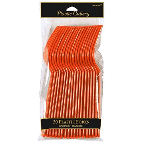 Amscan Reusable Party Forks (20 Piece), Orange, 9 x 4.5"