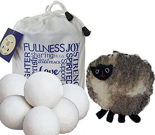 WOOL DRYER BALLS 6 PACK XL WITH *BONUS HANDMADE SHEEP COIN PURSE AND FREE E-BOOK* - SUPERIOR QUALITY, ORGANIC, ANTI STATIC, REUSABLE ALL-NATURAL LAUNDRY SOFTENER - PERFECT FOR BABY!