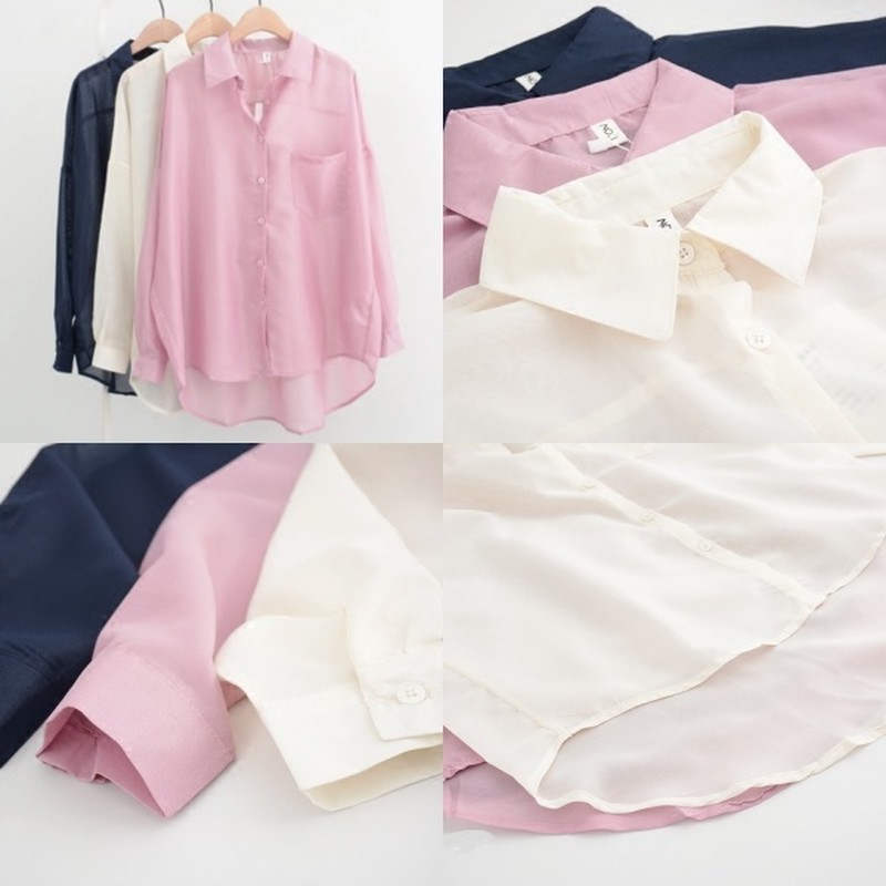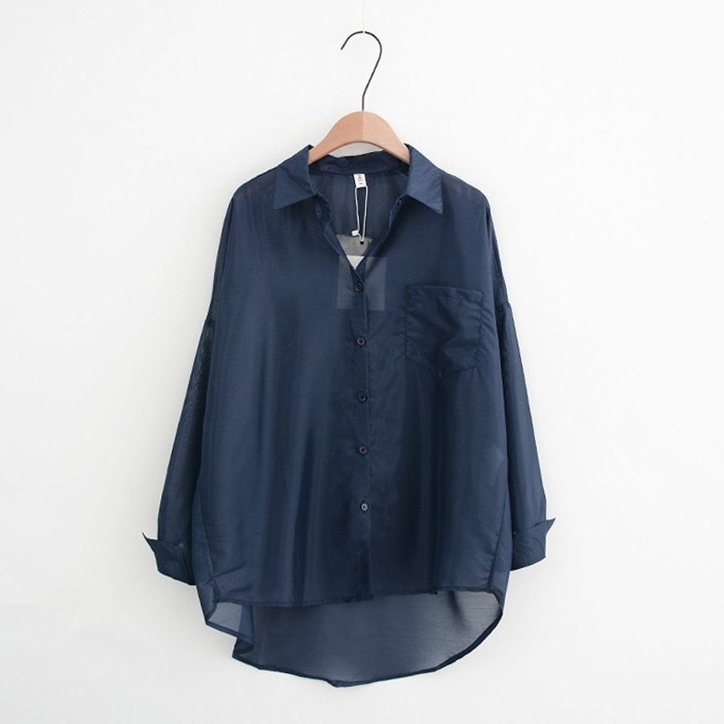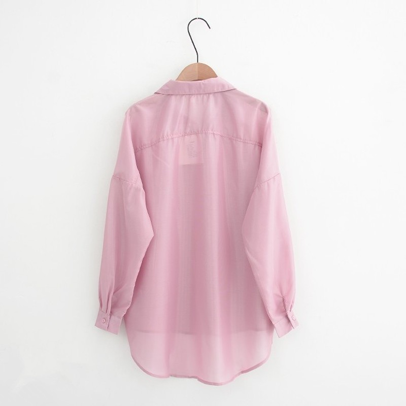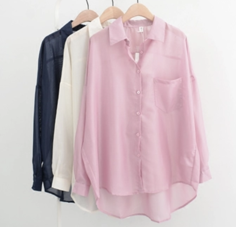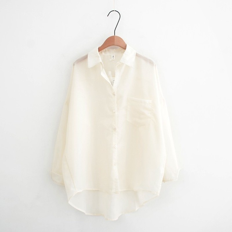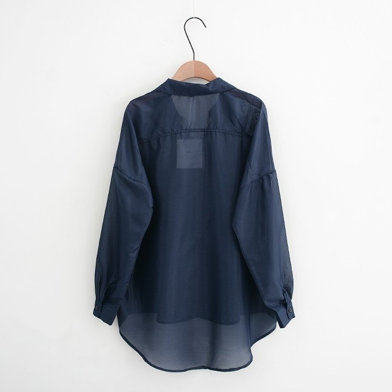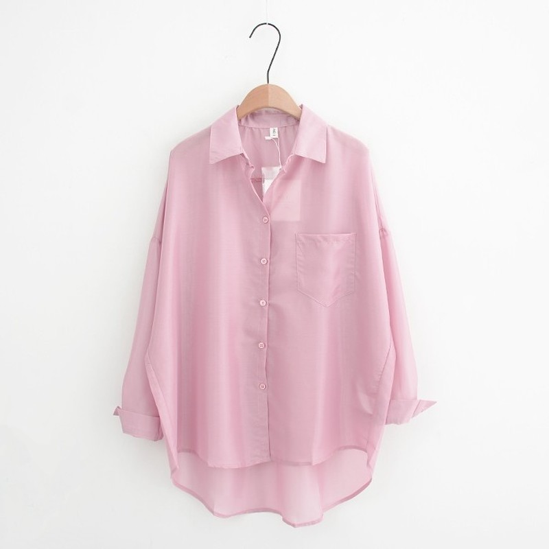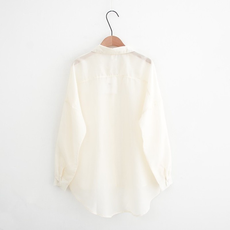 上品な透け感のあるシルクシャツ。 後ろの丈が長く、おしりが隠せるチュニック丈で着回しやすさが魅力です♡