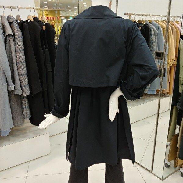 루즈한핏의 더블 버튼 코트 입니다자연스럽게 오픈해서 입기에도 괜찮구요 허리끈을 살짝묶어서 입으면 원피스 라인 처럼 떨어져요적당한 길이감이구요 너무 롱 기장 부담 스러워하시는분들께 특히 추천 드려요~
