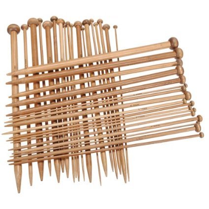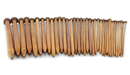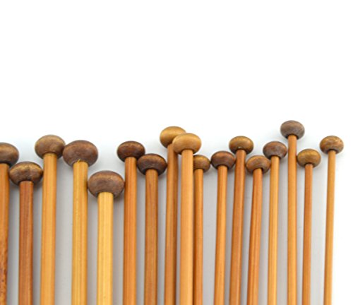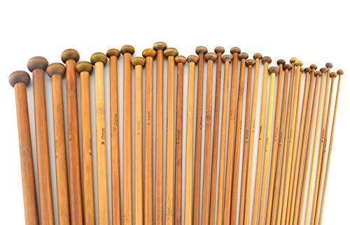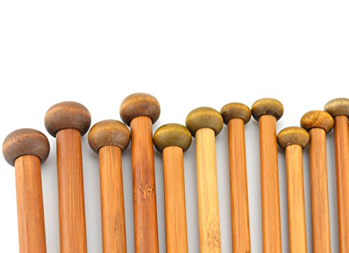 Samyo 36 Pcs Single Pointed Smooth Premium Carbonized Brown Bamboo Knitting Needles Set with 18 Different Sizes 2mm-10mm (10 Inches)