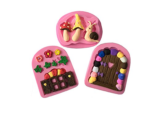 Sharlity Charmful 3 PCs Vintage Fairy Garden Home Door Snail Silicone Chocolate Fondant Molds for Cake Decorating