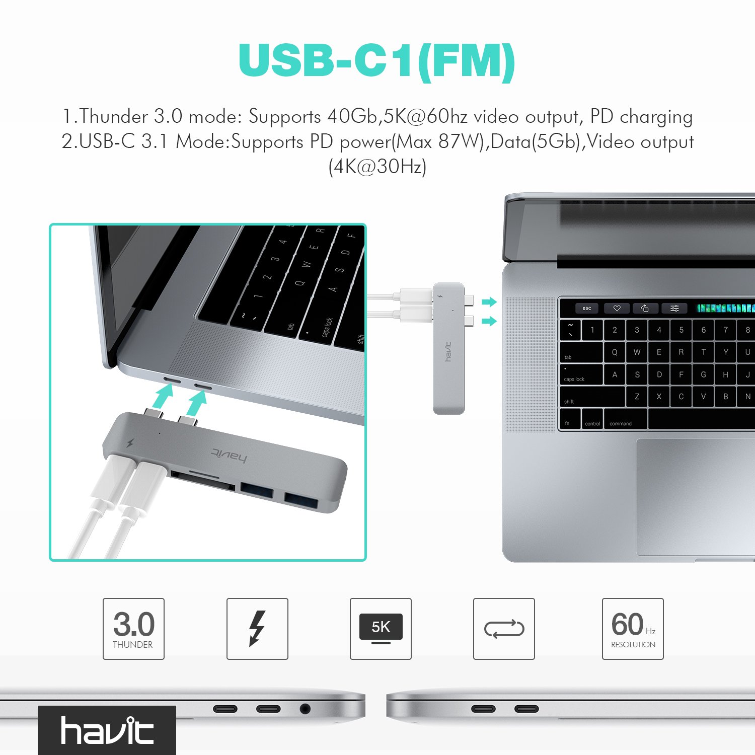 USB - C 3.1: Provides power delivery (Max 87 W), data (5 Gb), video export (4 K @ 30 Hz).