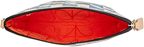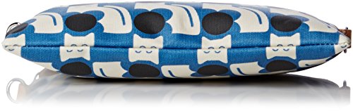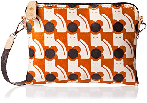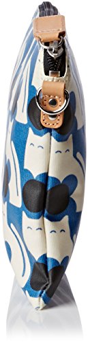 Matte laminated travel pouch in the 'poppy cat' print with leather trims and contrast colored zip closure. Inside details include linear stem jacquard lining, small leather logo card holder pocket, small patch pocket for a passport and mobile slip pocket. Silver colored hardware. Includes a detachable long strap in double sided webbing that allows the bag to be worn as a shoulder bag or across the body (length 112cm) or detached and used as a pouch or clutch.