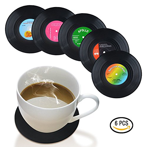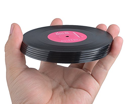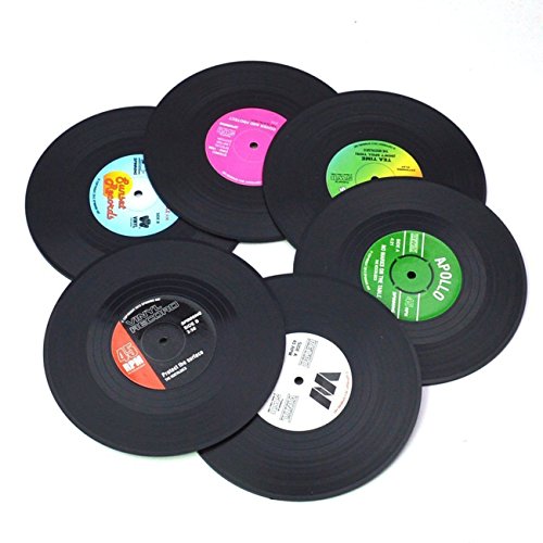 - FITS ANY CUPS - Set of 6 different coloured silicone and plastic drinks coasters in a cool retro presentation box, great gift for any music lover. Coaster dimensions: 4.1 in x 0.1 in