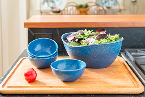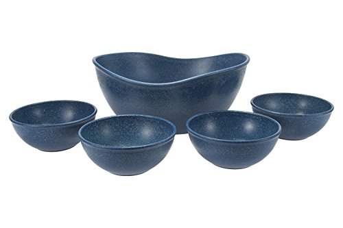 This set of wpc (wood plastic composite) bowls are a sustainable and innovative way to serve friends and family. Contains one large, deep, and versatile serving bowl, great for salads, and four durable individual 16oz bowls. As always, the BPA free products are dishwasher and microwave safe.Feature