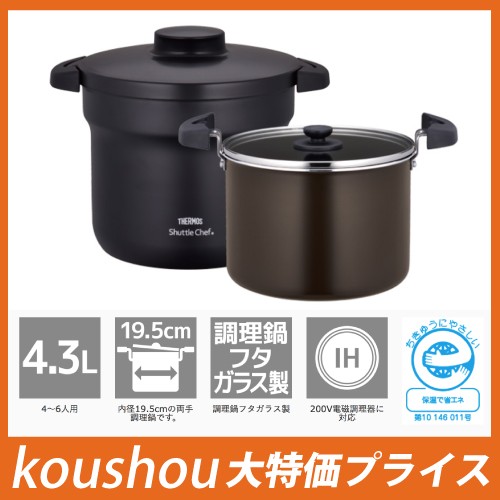 サーモス 真空保温調理器シャトルシェフ 4.3リットル(4~6人用) カラー:ブラック KBJ-4500-BK
