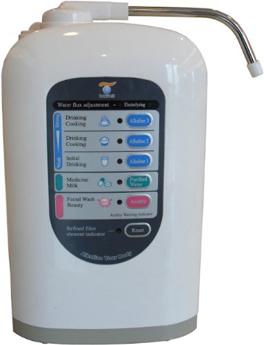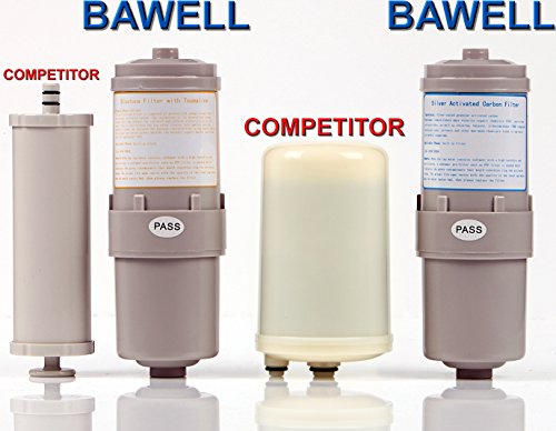-. Feature : Makes Alkaline Water with a PH Range 5.0 to 9.5 ORP Range +300 to -250 / Water Ionizers made by Bawell feature a Lifetime Warranty & are more economical & environmentally friendly than buying bottled alkaline water. / Biggest & Best internal filter in its P.R.Ice class, see image, yearly replacement cost of $39.95 / This Bawell brand water ionizer features a Lifetime Warranty and will supply you with alkaline ionized drinking water and acidic ionized water. Bawell brand ionizers connect directly to your kitchen faucet with their included 2 way universal faucet adapter. Creating ionized drinking water is very easy just turn on your faucet then press the button on the adapter and the ionizer will turn on automatically. The universal faucet adapter allows you to continue to use your faucet as you always do for washing dishes or press the button on the adapter to use the ionizer. Installation is very simply and will only take you a couple of minutes. Simply unscrew the aerator on your faucet by turning it counter clockwise then screw in the faucet adapter. Now connect the intake line to the adapter and plug in the machine and you're ready to go! People are becoming more and more aware of the amazing alkaline water benefits to be gained with water ionizers. Not only will your drinking water have a higher PH to counteract consumption of acidic foods like coffee which has a PH of 5.0, but your drinking water will be micro-clustered, leading to faster rehydration and it will have a negative Oxidation Reduction Potential -ORP the neutralize free radicals inside cells. In addition to drinking ionized alkaline water for all its health benefits it is great for cooking. Using higher PH alkalized water of 9.5 for brewing coffee will produce coffee with a PH closer to 7.0 When cooking and making soups, pastas, or boiling you can create more alkaline meals while preserving the natural flavors and nutrients within the food with ionized water. If you were to wash your face with weak acidic water you will find that the skin feels tighter and toner since it acts as a natural astringent removing dead skin cells which is great for makeup application and removal. Soaking your fruits and vegetables in acidic ionized water naturally kills surface bacteria while also removing pesticides. / Connect to kitchen or bathroom Faucet with included 2 way adapter. - Lifetime Warranty - PH Range: 5.0 to 9.5 - ORP Range: +300 to -250 - Flow Rate: 1 Gallon every 90 Seconds - Filter: 1 Filter good for 1585 Gallons replacement cost of $39.95 - Built in compartment to place minerals or vitamins so that they go into your alkaline water. - Filter replacement indicator on the front of the machine - Size: 6.7" x 3.0" x 11.5" Inches - Weight of Machine: 6.5 lbs - Maximum Water Temperature: 140 Degrees Fahrenheit - Operating Water Pressure: 10.15~50.76 lbs/inch2 - 3 levels of alkaline water, 1 level of purified water, 1 level of acidic beauty water - Select one of four power settings for a total of 12 levels of alkaline water and 3 levels of acidic water. Automatic reverse cleaning on start-up and shutdown. - 120W when working and less than 4W when idle. - Built in fuse protection against electrical overload. - Built in temperature protection fuse. - For testing PH Bawell recommends using color changing PH testing drops which you can buy at aquarium supply stores or pool supply stores and even Amazon.