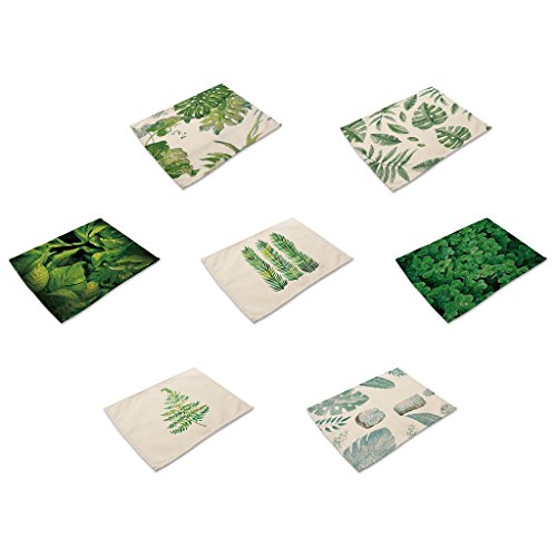 -. Title : HACASO Tropical Plants Forest Pattern Dining Table Mats Set of 6 Cotton Linen Placemats