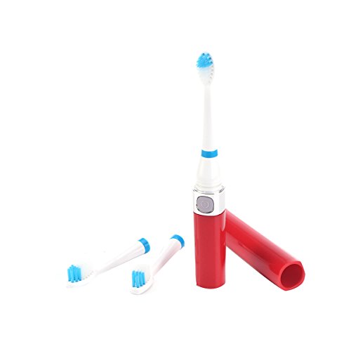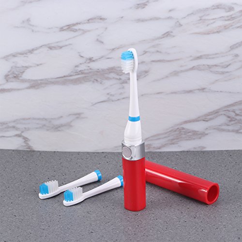 BESTOMZ Waterproof Ultrasonic Electric Toothbrush Holder with 3 Replacement Heads 12500/min Pro Teeth Whitening Brush Oral Care Dental Tool (Red)