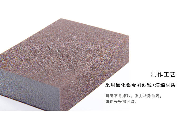介绍:内层柔软海绵,外层磨砂工艺,耐磨不易掉砂,轻松去除