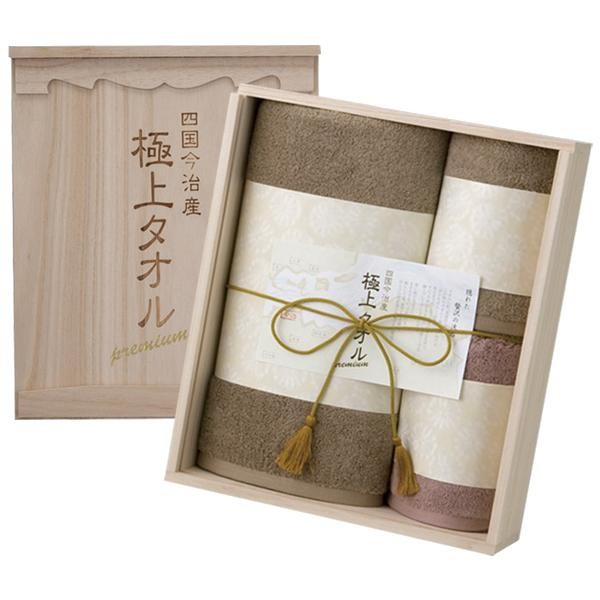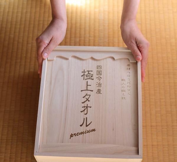 | 高級感のある木箱に入った今治製のタオルセット。 |
