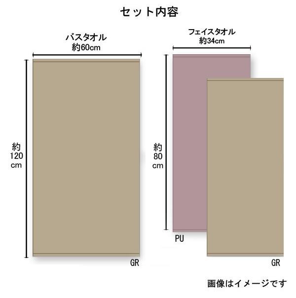| サイズ | バスタオル:約60×120cm、フェイスタオル:約34×80cm 個装サイズ:39×33×12cm |