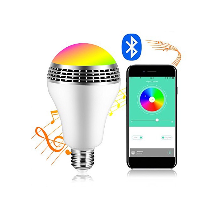 【2in1다기능 스피커】동시에 스마트LED전구와 Bluetooth스피커 기능 첨부 오입니다.LED 독자적인 기능에 의해 1600만종류 중에서 분위기나 설치 장소 에 따라 어떤 색에서도 선택 가능합니다.밝기나 볼륨은 스마트 폰부터 조정 가능합니다.