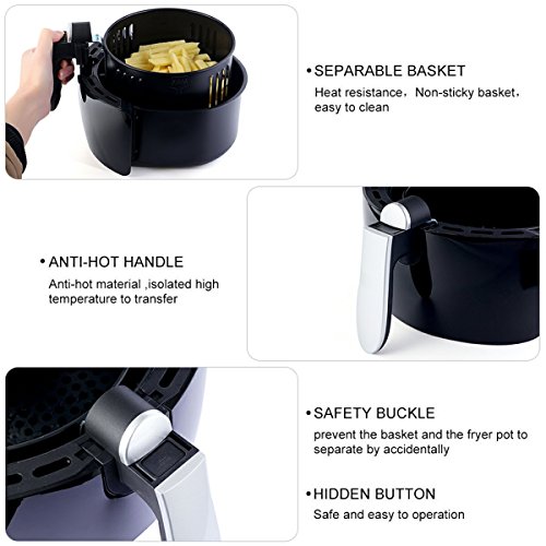 Oil Free Fryer: Only one air fryer is enough. Use very little to no oil to cook food, food is crispy on the outside and tender on the inside. No more sacrificing taste and texture of your favorite foods