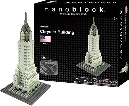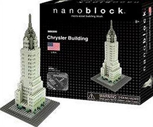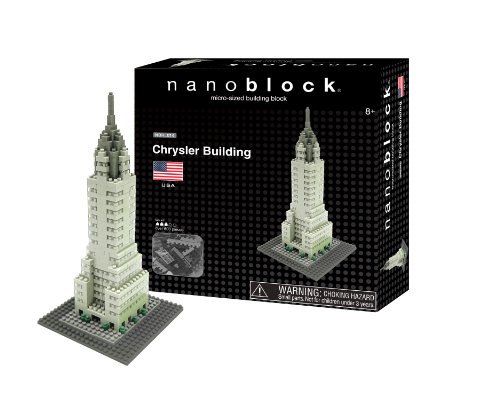 Studio : Nanoblock Publisher : Nanoblock Binding : Toy Product Description You don't have to be an engineer to create with Nano block. With these micro-sized building blocks, 3D structures are constructed like never before. Watch in amazement as all structures are erected to the tiniest detail. Watch as the tallest brick building in the world, located on the east side of Manhattan, The Chrysler Building, takes shape beneath your fingertips with over 390 assorted size and colored pieces. 0