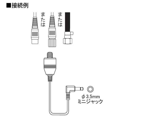 | F型接栓をミニプラグに変換!ポータブルテレビなどのアンテナ端子につなぐ時にご使用ください。 |