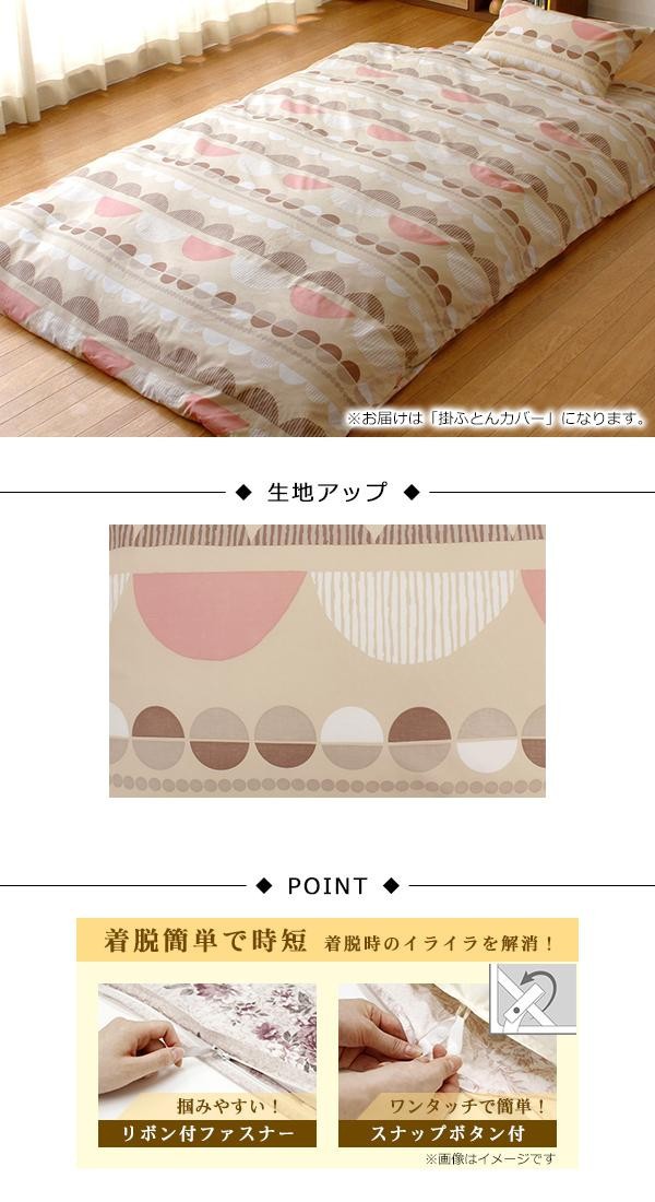 国内で染色し、1枚1枚丁寧に縫製された掛ふとんカバーです。着脱が簡単にできる工夫が施されています。