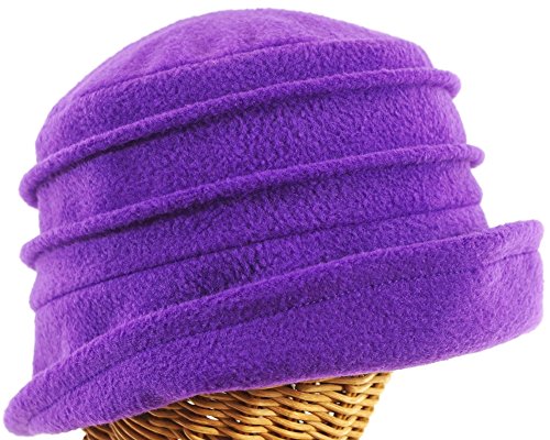 (Hat Stuff Loft)/Accessories/Hats/DIRECT FROM USA/Womens Dip Brim Fleece Pleated Cloche in Purple Made in Massachusetts