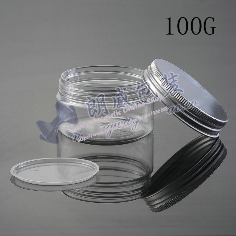 20pcs/lot 100g PET Empty Clear Plastic Containers Jars for cosmetics Packaging with Aluminum Cap
