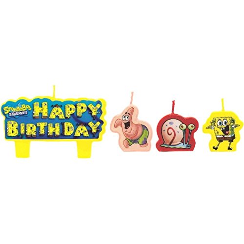 Party Time SpongeBob Molded Mini Character Birthday Candle Set, Pack of 4, Multi , 1.25" Wax