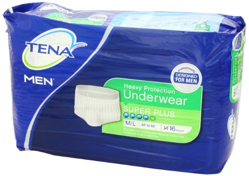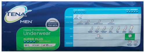 TENA for Men Heavy Protection Underwear, Super Plus Absorbency, Medium/Large, 16 Count