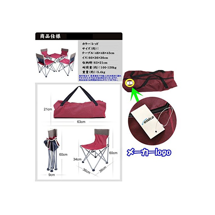 원본상품명: Fenka(フェンカ) 折り?み アウトドア チェア テ?ブル 5点セット 椅子 背もたれ付き outdoor5set