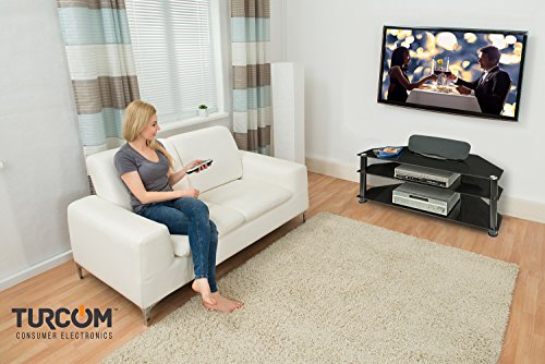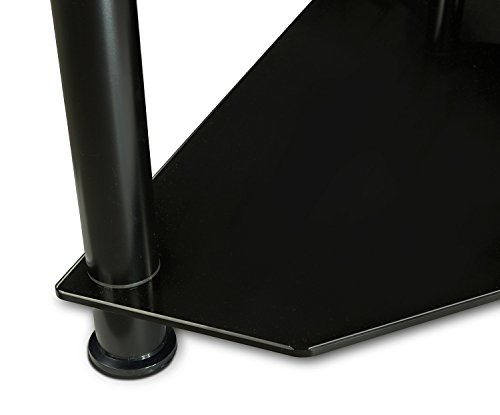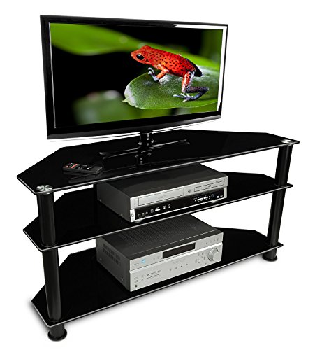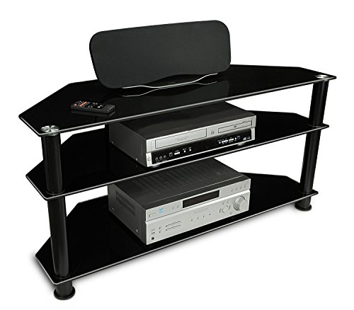 -. Feature : HIGH CAPACITY SHELVING DESIGN: 8mm thick tempered glass shelves. They are supported by four stable aluminum columns coated in black. Ideal for corner or wall placement with its built in cable management and multi-tiered shelving. The three tiers offer set to hold audio and video equipment, consoles, cable boxes, DVD, and speakers / TEMPERED GLASS: Strong enough to withstand 132lbs (60kg) and support TVs from 30" to 50". Each glass shelf is coated in a modern black color scheme for a contemporary silk gloss appearance. The sleek appearance is matched with a beautiful cut-in design / SPACIOUS SHELVING: Media devices have plenty of space on these shelves. They are 43" wide and 16.5" long leaving plenty of room for organizing your AV equipment neatly and efficiently. Large spaces between each shelf for maximum airflow. The distance between the bottom and middle shelf is 11". The top shelf has a clearance of 7.2". A total height of 21.1" tall keeps this table tv stand sleek / COMPATIBILITY: The architectural structure makes room for gaming, tvs like Samsung, Sony, LG, Sharp, Insignia, Vizio, Haier, Toshiba, Sharp, Element, TCL, Hi-Fi storage, monitor placement, PC and computer storage. Free standing design ensures you can place this in any business, home, office, school, dorm, or residence for furnishing / INSTALLATION: Comes with easy-to-follow instructions and is easy to set up. It's made from strong and capable materials. Comes with hardware for the stand set up and cable access holes. Mount-It! is the expert in television wall mounts and home theater accessories. We apply our decade long experience in this field to offer the best features at value prices. Contact our friendly customer support team for any questions or issues