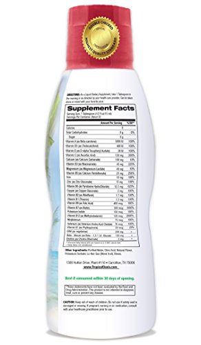 Premium Blend of Essential Vitamins and Minerals: It exceeds the minimum recommended daily allowance of essential vitamins, antioxidants, and minerals. Tropical Oasis Prenatal Multivitamin formula includes, but isn't limited to: Vitamin A, Vitamin D, Calcium, Iron, Omega-3 Fatty Acid, Biotin, B12, Zinc