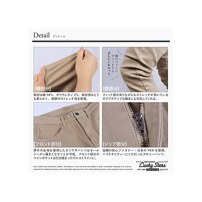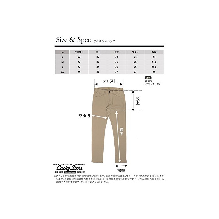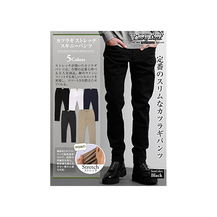 원본상품명: LUCKY STORE ( ラッキストア) チノパン ストレッチパンツ メンズ スキニ カツラギ素材 ブラック L