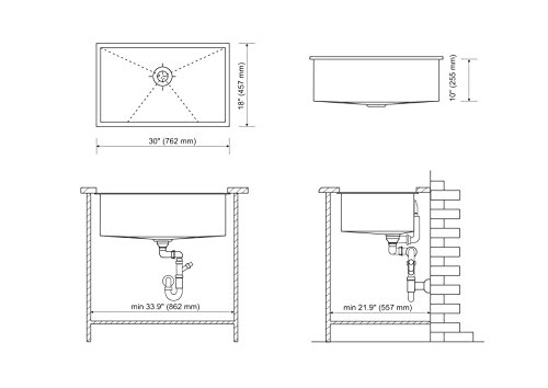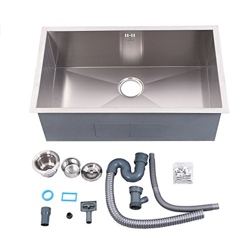 Stillori Kitchen Sink 30''x18''x10'' Undermount Single Bowl Zero-Radius 18 Gauge, 10'' Deep, Handmade, 304 Stainless Steel, D7646H