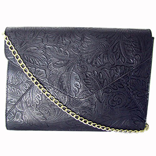 Steve Madden Women's Badler Clutch. This clutch features a 100% polyurethane body and trim and 100% cotton lining. In addition to these material characteristics, this clutch also features a fold over snap closure, a chain link handle (11.75" drop), an interior zipper pocket, two interior slide pockets, and floral detailing. Dimensions: 9" x 12" x 2.25" (Height x Width x Depth). Chain Link Handle: 11.75" Drop.Feature