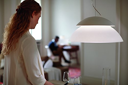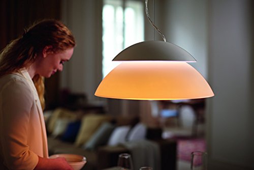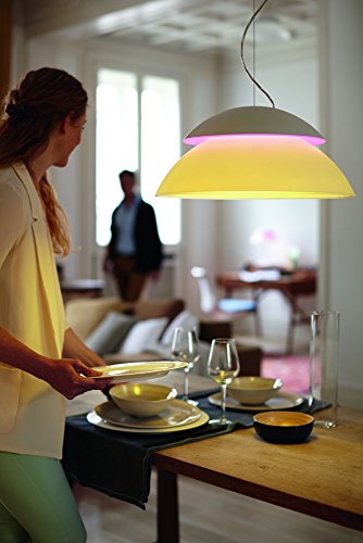 Change the way you control light at home with the Philips Hue Beyond Dimmable LED Smart Pendant Light. Choose between millions of colors and shades of white light to light your home, wirelessly control with your smartphone or tablet, and sync your light immersively to music, games, and movies. Requiring the Hue Bridge (sold separately) for the full Hue experience, this iconic-shaped smart lamp with dual-light source LightDuo technology combines functional and mood lighting in one design. Install it anywhere you would a standard overhead light, adjust its height, and pair it with the Hue Bridge, which allows you to control this and other Philips Hue lights via the Philips Hue App. Easily expand your lighting system with accessories (sold separately), such as a Hue Dimmer Switch, Hue Tap, or Hue Motion Sensor. Pair it for automation with your existing Nest or SmartThings system. This box includes one Philips Hue Beyond Pendant Light with manual and two-year warranty.Feature