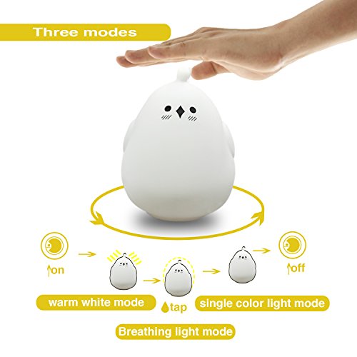 - 【THREE MODES & TAP CONTROL】 Turn on the button of the bottom. Tap the silicone surface to switch among normal white light mode, 7-color flashing light mode and 7 single colors mode. Nursery light will let you into a romantic sweet surrounding feeling.