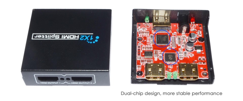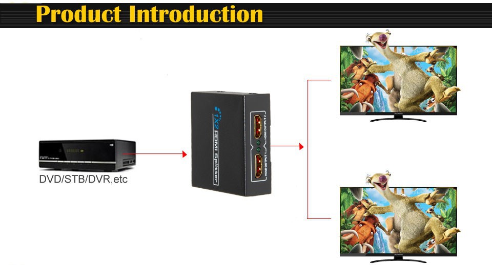 1. 1 x 2 HDMI splitter distributes: 1-HDMI source to 2-HDMI displays simultaneously