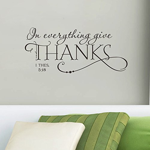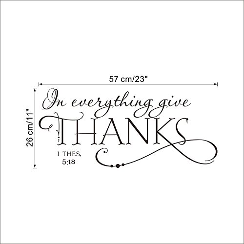 Christian Quotes Lettering Words Black Design Wall Decals for Office Study Room, Proverbs "In Everything Give Thanks" Wall Décor Sticker Vinyl Decal 1 Thessalonians 5:18 for Thanksgiving Decor