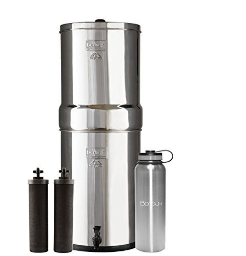 Crown Berkey Water Filter System includes Black filters (6 Gallons) bundled with Boroux 40 oz Stainless Steel Double Wall Bottle