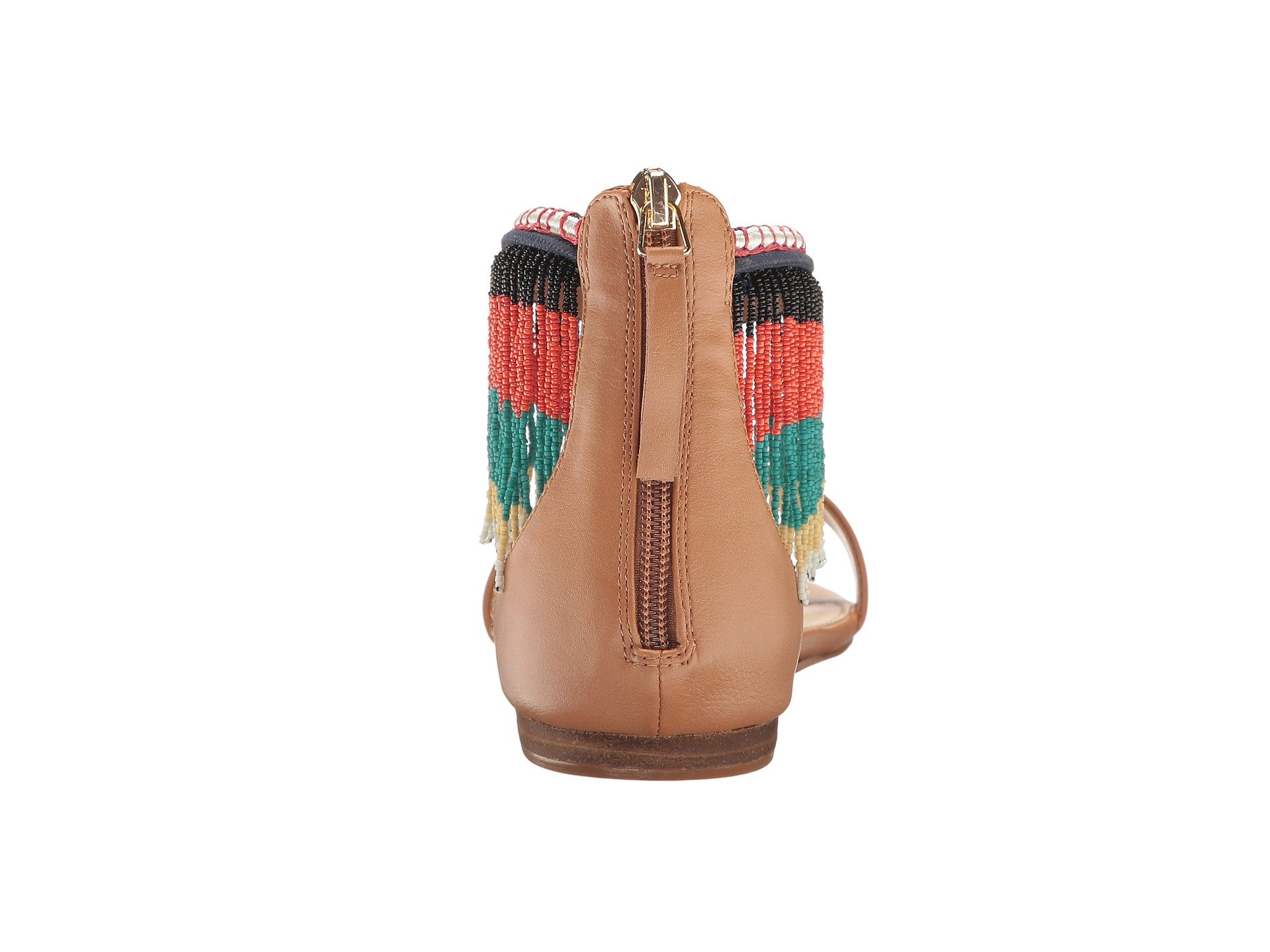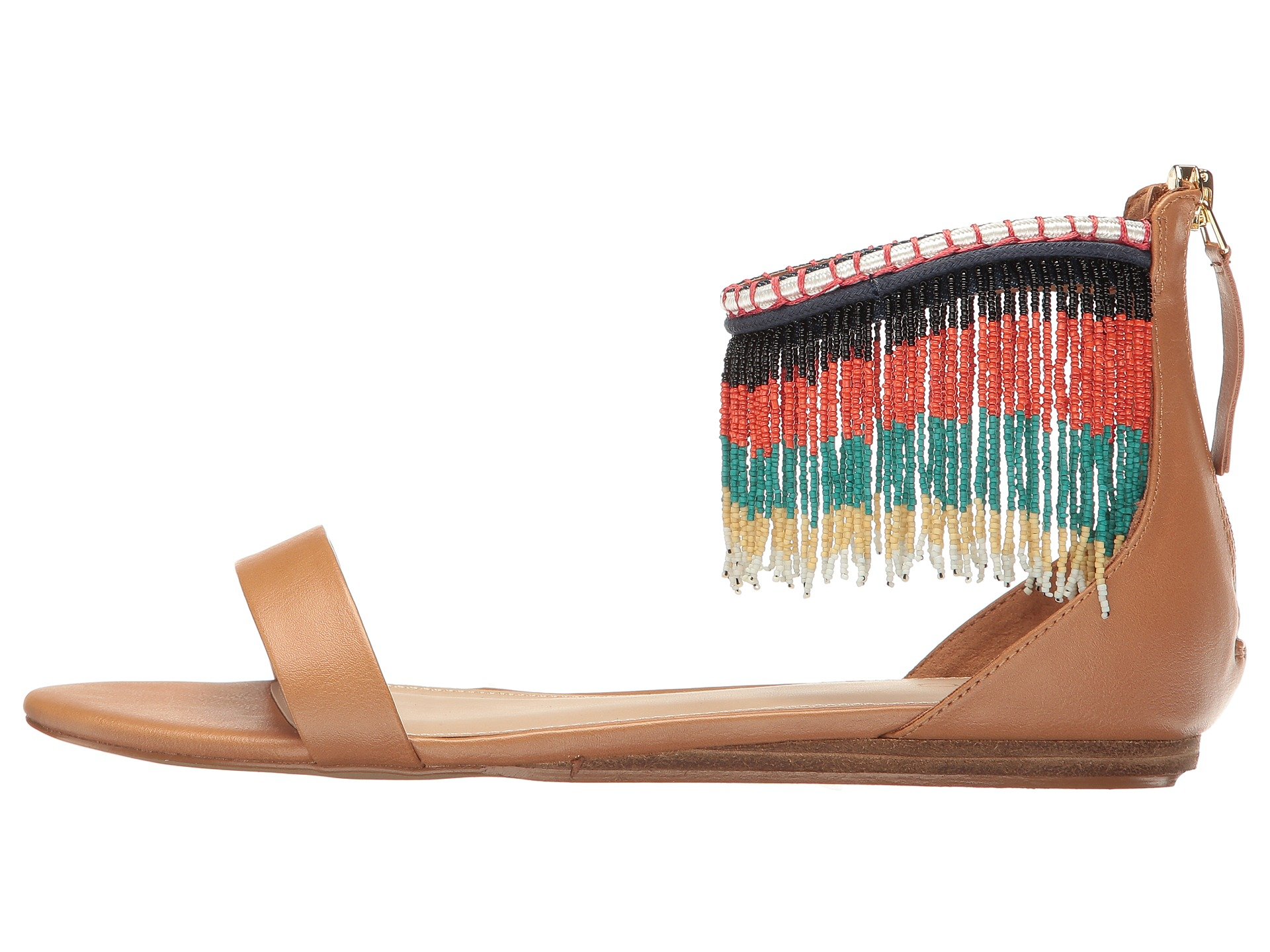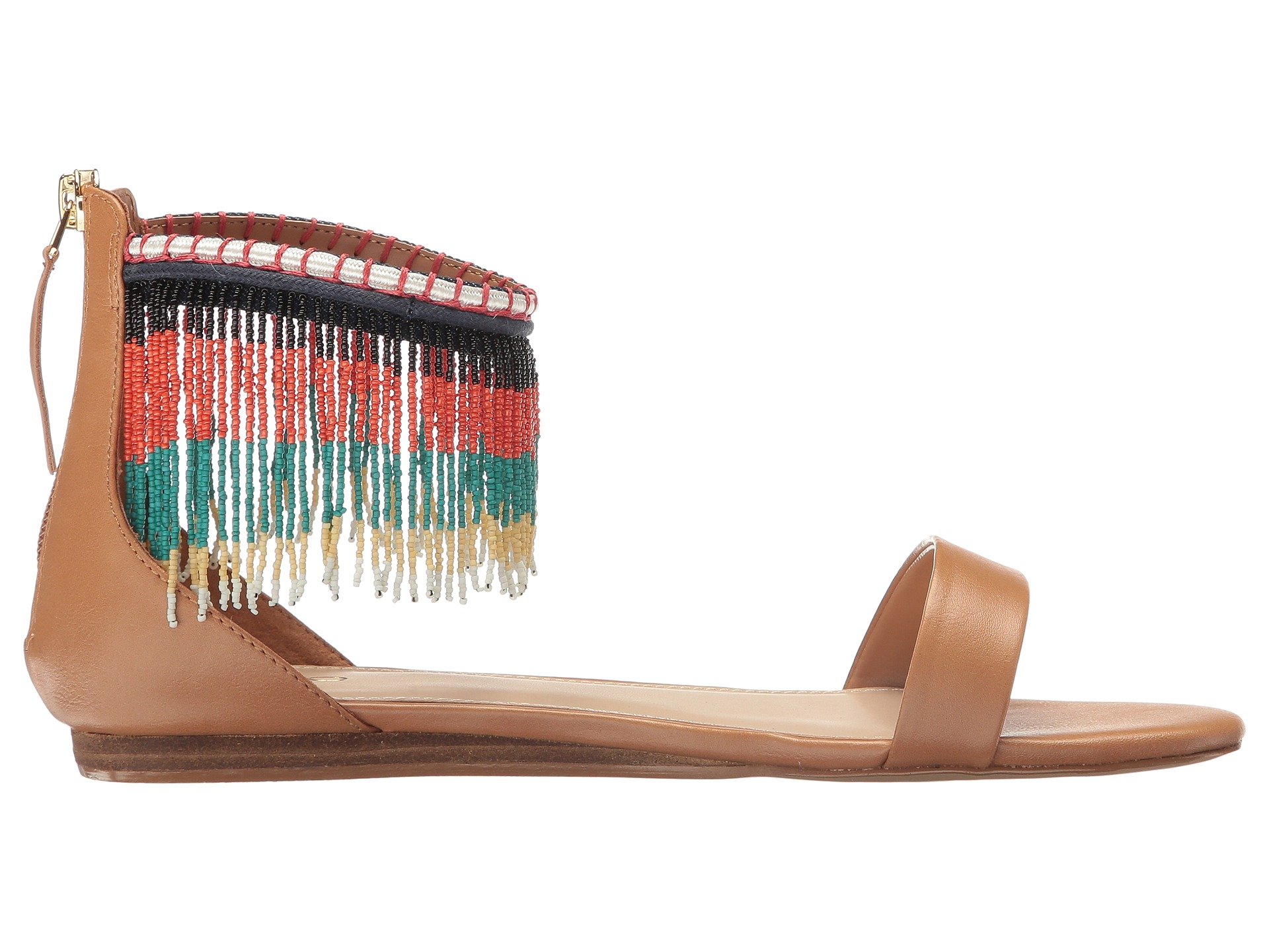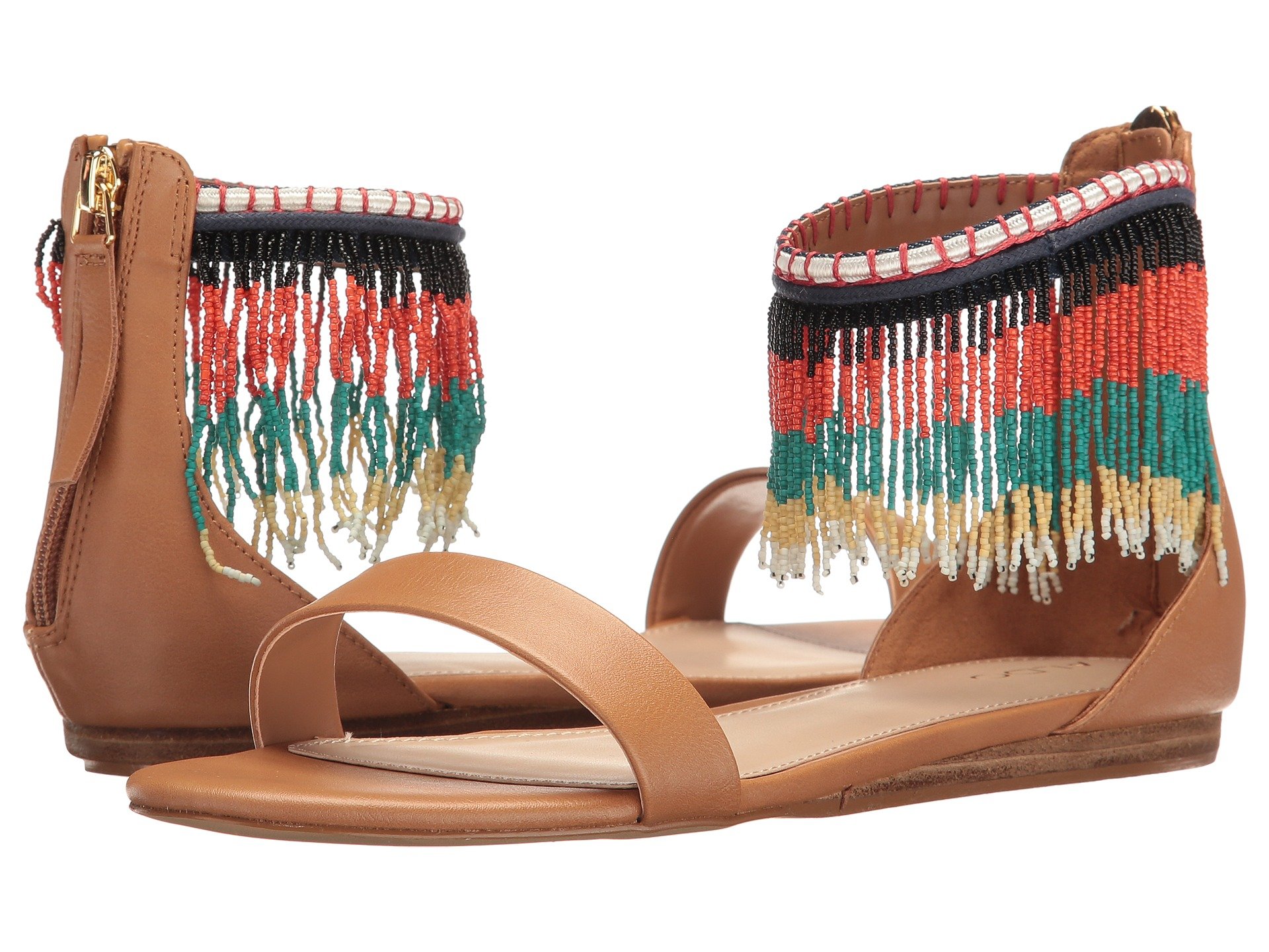 | Product Information SKU: #8879128A little goes a long way with these subtle but sophisticated Larysa sandals.Faux leather upper features a colorful fringed ankle.Back zipper closure.Open toe.Synthetic lining.Lightly cushioned insole.Micro-wedge heel.Synthetic sole.Imported.Product measurements were taken using size 40 (US Women's 9), width B - Medium. Please note that measurements may vary by size.Weight of footwear is based on a single item, not a pair.Measurements: Heel Height: 1?2 in Weight: 7 oz |