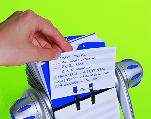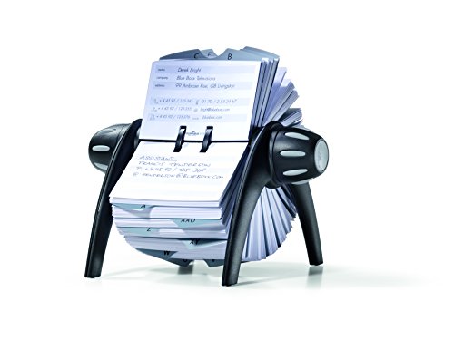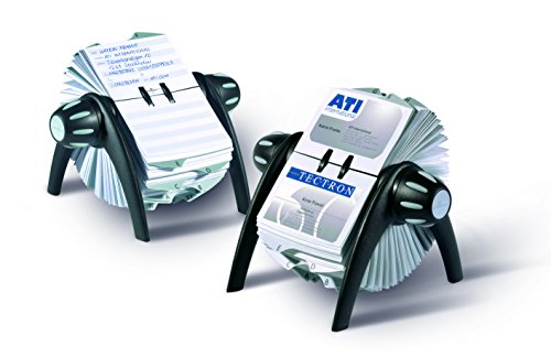 Stylish rotary card file has 500 double-sided cards that feature alternating gray and white entry fields for easy reading and 25 rugged alphabetical dividers