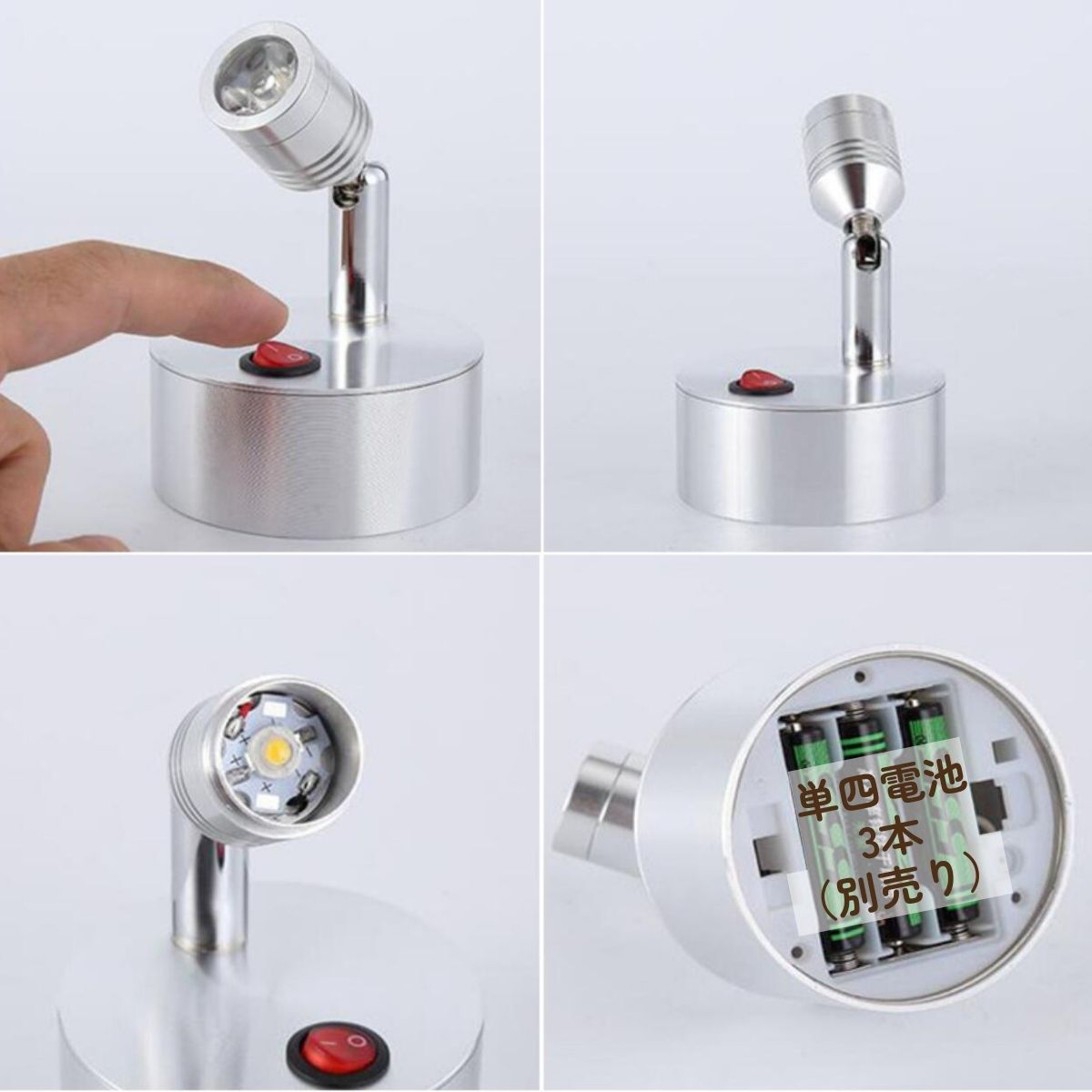 ・電源:単四電池×3個(別売り) 笠の材質:アルミ