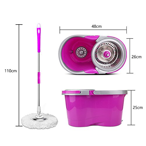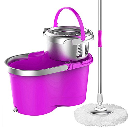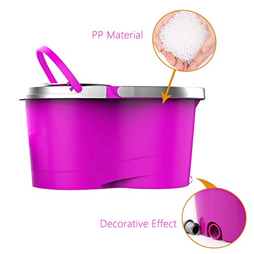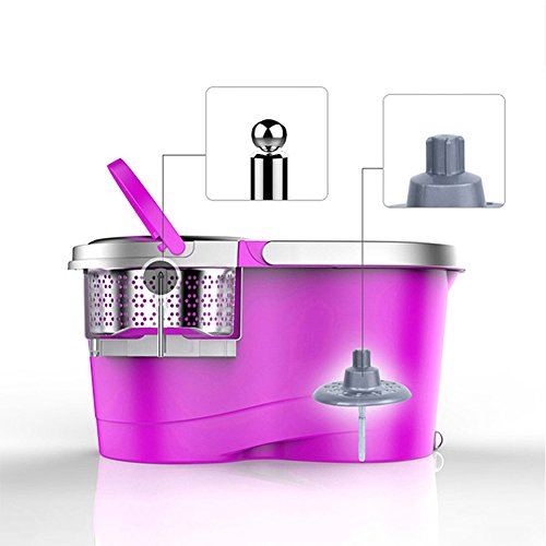 360 Spin Mop and Stainless Steel Bucket set - Indoor Floor Cleaning System - Deluxe hand pressure rotating, with 2 Microfiber Mop Heads, New Upgrade - Purple