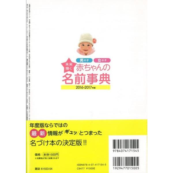 【商品基本情報】 商品名称:未来輝く赤ちゃんの名前事典 2016-2017年版 | |