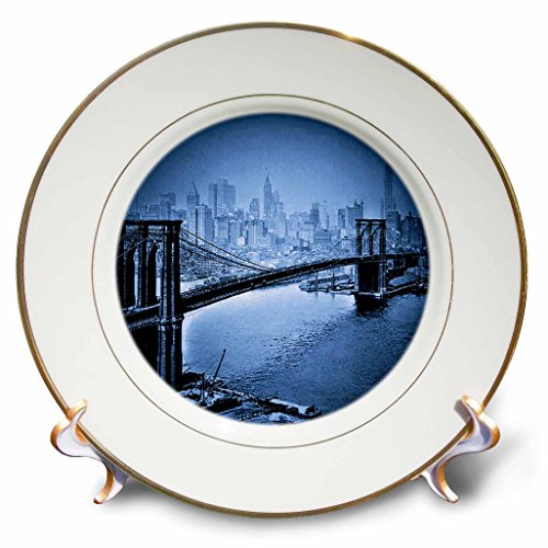 3dRose cp_21673_1 Vintage 1915 Brooklyn Bridge in Blue Porcelain Plate, 8-Inch