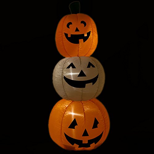 -. Brand : Holiday Living -. Color : Multicolor -. EAN : 0755305515765 -. Feature : Stands Approx 4' Tall. / LED Lighted For Nighttime Display. / Comes With Built in Fan Motor, Yard Stakes & Tether Ropes. / Self Inflates!! Just Plug Into Any Standard 110 Outlet. / Made By Gemmy.. -. Label : Holiday Living -. Manufacturer : Holiday Living -. ProductGroup : Kitchen -. ProductTypeName : KITCHEN -. Publisher : Holiday Living -. Studio : Holiday Living -. Title : LED Lighted Halloween Inflatable Pumpkin Stack -. UPC : 755305515765