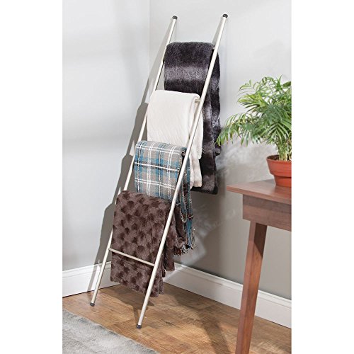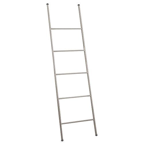 mDesign Free Standing Bath Towel Bar Storage Ladder - 5 Rungs, Satin