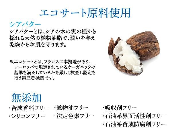 | こだわりのオーガニック成分(エコサート認定原料)を配合した、お肌に優しいオール天然原料使用の弱酸性クリームです。パラベンなどの合成防腐剤不使用。お子様にもお使いいただけます。 |