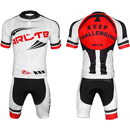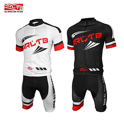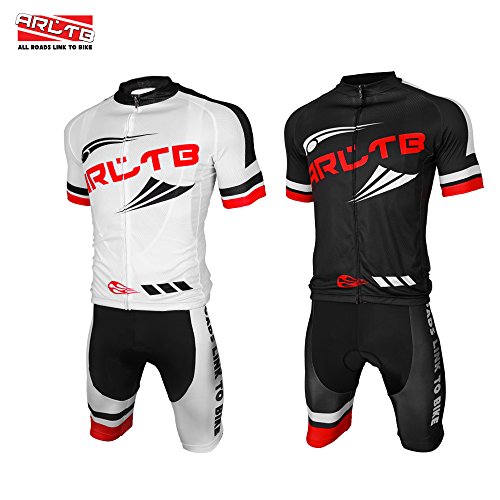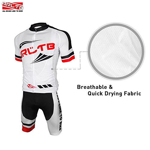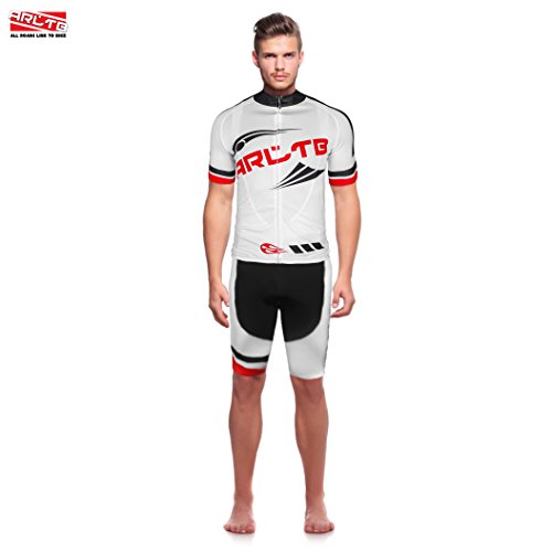 Arltb Cycling Jersey and Bib Shorts Set Bicycle Bike Short Sleeve Jersey Clothing Apparel Suit Padded Breathable Quick Dry Non Slip for Mountain Bike Road Bike MTB BMX Racing Outdoor (White, XS)