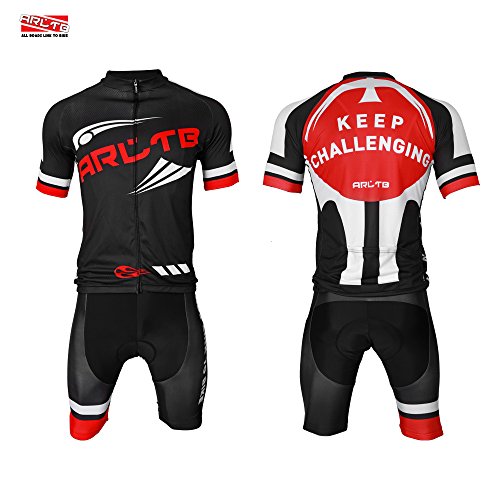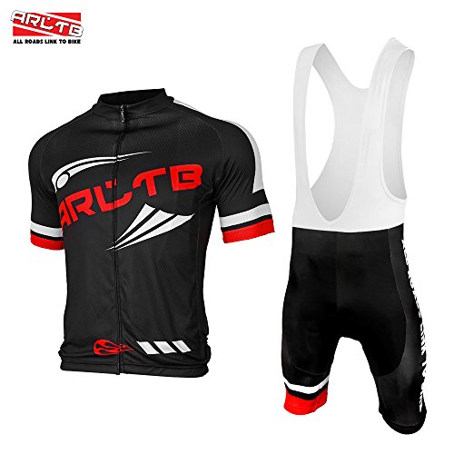 Arltb Cycling Jersey and Bib Shorts Set Bicycle Bike Short Sleeve Jersey Clothing Apparel Suit Padded Breathable Quick Dry Non Slip for Mountain Bike Road Bike MTB BMX Racing Outdoor