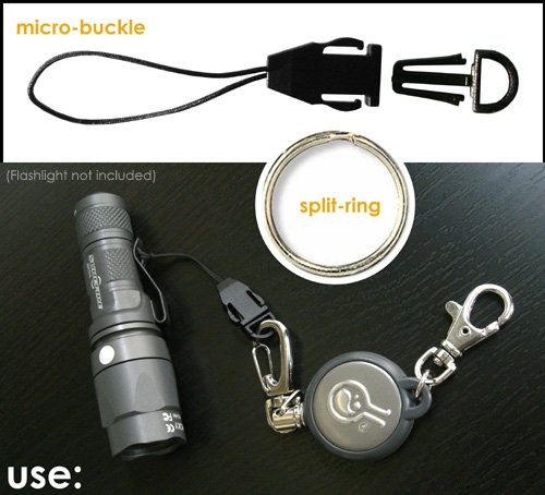 -. Feature : Twin spring-gate, swiveling biners, clip to: flashlight, folding knife, cellphone, keys, or wallet / Using a split ring, it quickly switches from tool to tool and stays out of the way till needed / High-strength, spring-load reel with small 35mm housing holds 2 ft. of thick 2mm plastic coat steel cable / Reel holds 170g before extending; Gear Retractor(TM) features a high-impact ABS shell, & brushed-steel, Civilian(R) logo on titanium color background / Casing Material: ABS; Cable Material: Stainless Steel